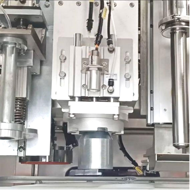 Die waterdigte deksel word met die hand in die dekseltoestel geplaas, outomatiese opeenvolgende toevoer. Die waterdigte dekseldruktoestel absorbeer die waterdigte deksel wat outomaties by die emmermond geplaas word om die deksel te druk.